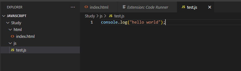 우선 Hello world 를 출력하기 위하여 다음과 같은 코드를 작성하였다.